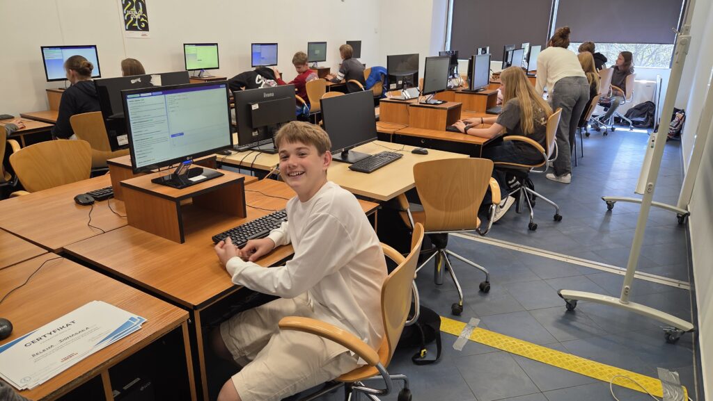 24 kwietnia 2026 roku uczniowie klas 7a i 7b wzięli udział w inspirującej wycieczce do Instytutu Informatyki Uniwersytetu Wrocławskiego, zorganizowanej przy współpracy z Kołem studentów informatyki w ramach akcji Hour of Code.
