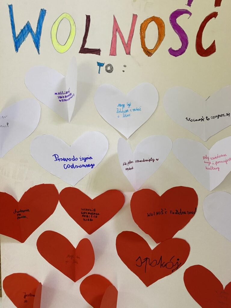 10 listopada obchodziliśmy Narodowe Święto Niepodległości. Z tej okazji uczniowie klas 2c i 2d przygotowali uroczysty apel, podczas którego nie zabrakło ani radości, ani wzruszeń, a mali wykonawcy wykazali się dużą odwagą. Po przedstawieniu, w ramach warsztatów, klasy oddawały cześć ojczyźnie, tworząc piękne plakaty i inne prace. Ten dzień pokazał, że nasi uczniowie to prawdziwi patrioci. ![]()
