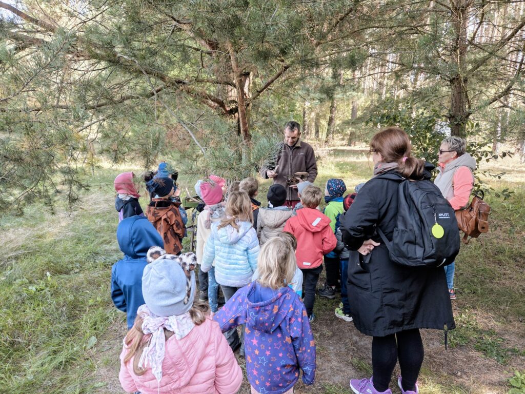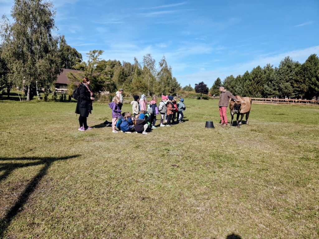 Przedszkolaki wybrały się na pełną atrakcji wycieczkę do Pęgowa, gdzie odwiedziły gospodarstwo „Kruczyna”. Na dzieci czekała ciekawa ścieżka edukacyjna po lesie, podczas której mogły podziwiać przyrodę, uczyć się rozpoznawać rośliny i słuchać odgłosów lasu. Po spacerze przedszkolaki miały okazję do wesołej zabawy na placyku rekreacyjnym, a następnie z ogromnym zainteresowaniem oglądały zwierzęta gospodarskie – m.in. świnki, krowy, króliki, kury i gęsi. Wycieczka była doskonałą okazją do poznawania świata przyrody, zdobywania nowych doświadczeń i wspólnej zabawy na świeżym powietrzu.